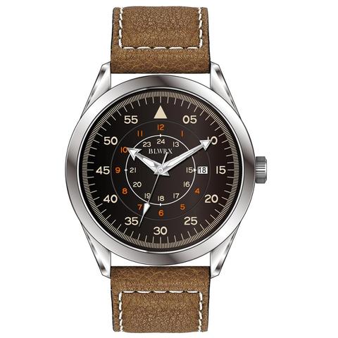 Etiqueta Privada de acero inoxidable cristal de zafiro de piloto automático reloj con correa de cuero